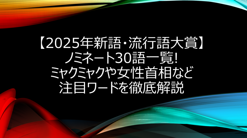 2025年11月5日、年末恒例の「2025年新語・流行語大賞」のノミネート30語が発表されたんです。今年は「ミャクミャク」「女性首相」「エッホエッホ」など、SNSで話題になったワードから社会問題を反映した言葉まで、多彩なラインナップが揃いました。 特に注...