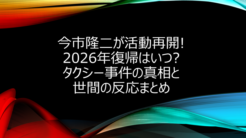 今市隆二が活動再開!2026年復帰はいつ?タクシー事件の真相と世間の反応まとめ