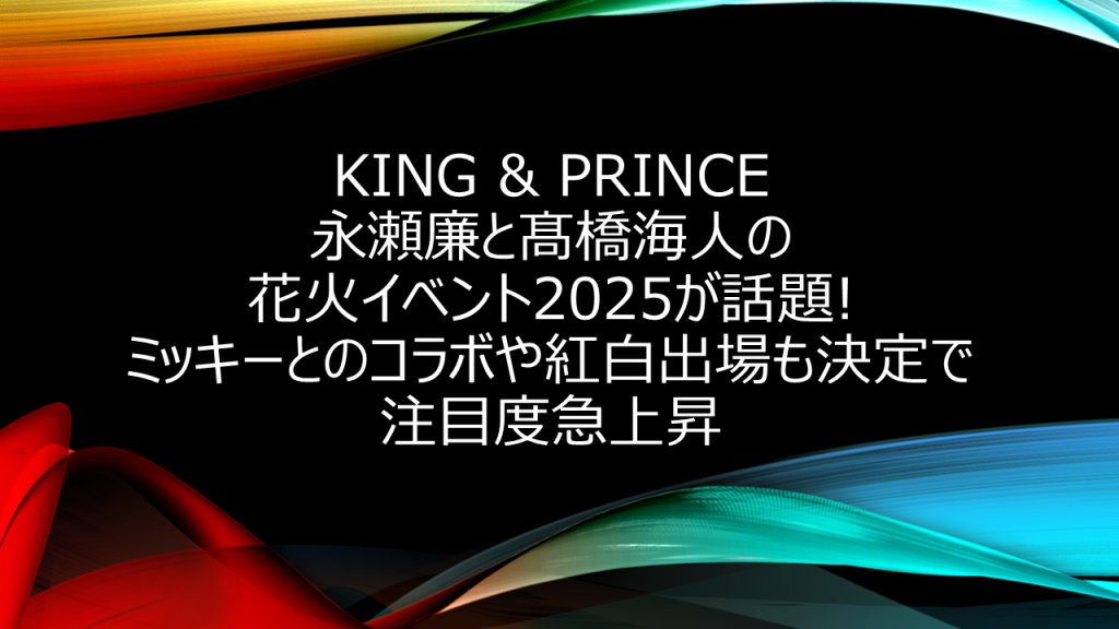 King & Prince永瀬廉と髙橋海人の花火イベント2025が話題!ミッキーとのコラボや紅白出場も決定で注目度急上昇