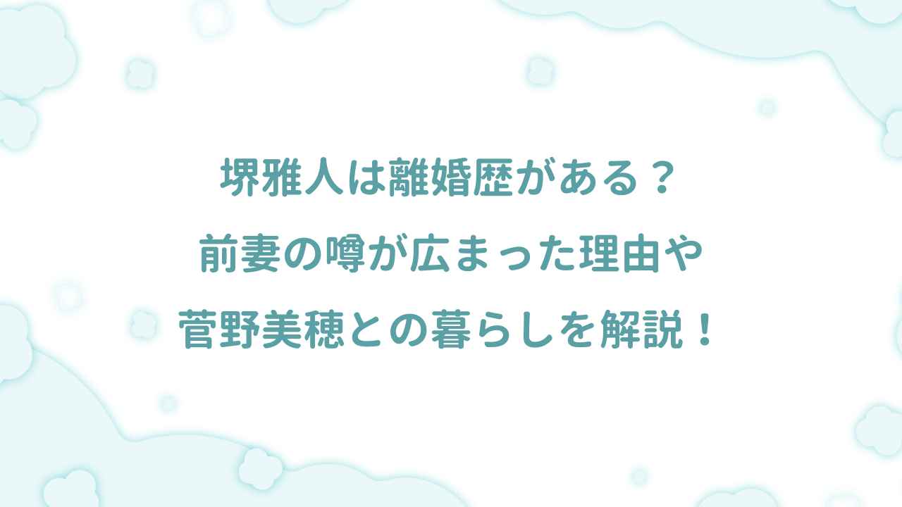 俳優の堺雅人さんについて「離婚歴がある」「前妻がいる」といった噂を耳にしたことはありませんか。