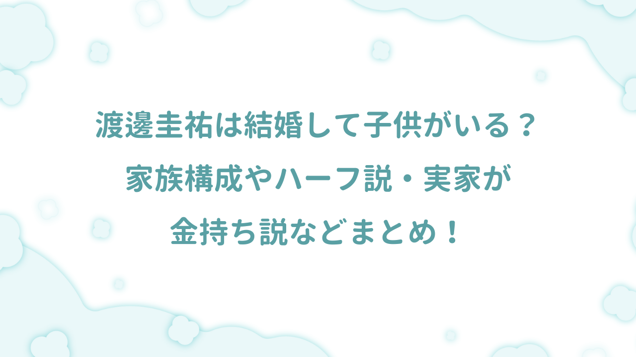 - 渡邊圭祐さんは2025年現在独身で妻も子供もいない