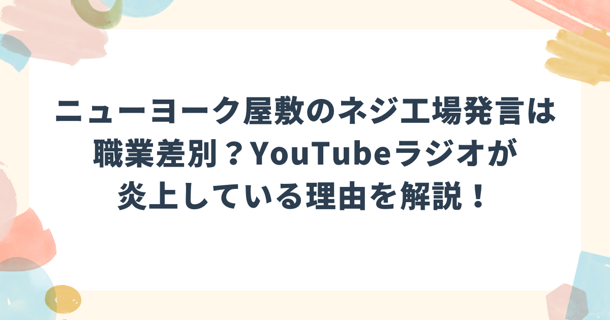 この職業差別発言が大炎上した理由は、現代のSNS拡散力にあると思います。YouTubeで配信された「ニューヨークのニューラジオ」の内容が、すぐにTwitterやまとめサイトで広まったんです 。