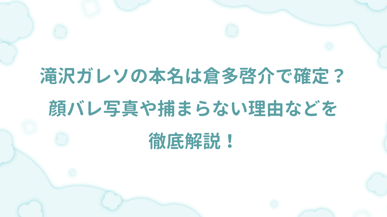 しかし最近では、本名や顔写真など、これまで隠されていた情報が次々と明らかになっています。今回は、滝沢ガレソの本名「倉多啓介」説の真偽から、なぜ逮捕されないのかという疑問まで、気になる情報を分かりやすく解説していきます。