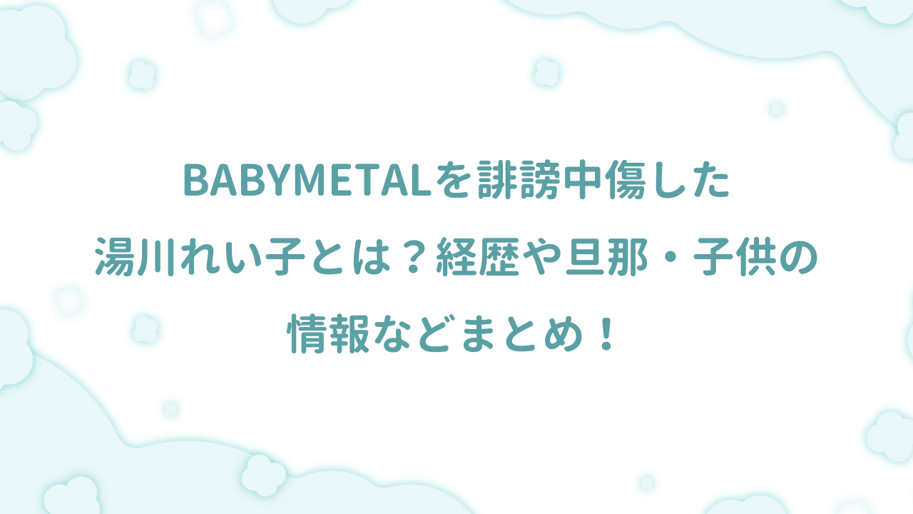出典:湯川れい子、人気音楽ユニット「BABYMETAL」を「水商売的 – Yahoo!ニュース(https://news.yahoo.co.jp/articles/af6a864f9f0cd2c8c1db61d51c95c8470fc92bb8)