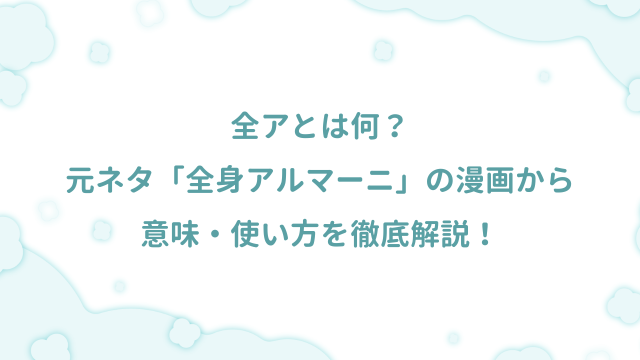 SNSで見かける「全ア」という言葉、一体何の略なのか気になりませんか。実はこの言葉、2018年に投稿されたある漫画から生まれたネットスラングなのです。