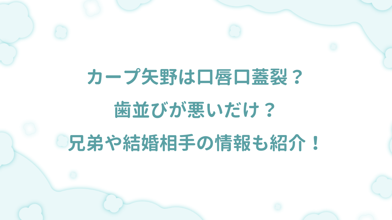 この記事では、カープの矢野雅哉選手の口唇口蓋裂の可能性や歯並び、家族情報について詳しく見てきました。