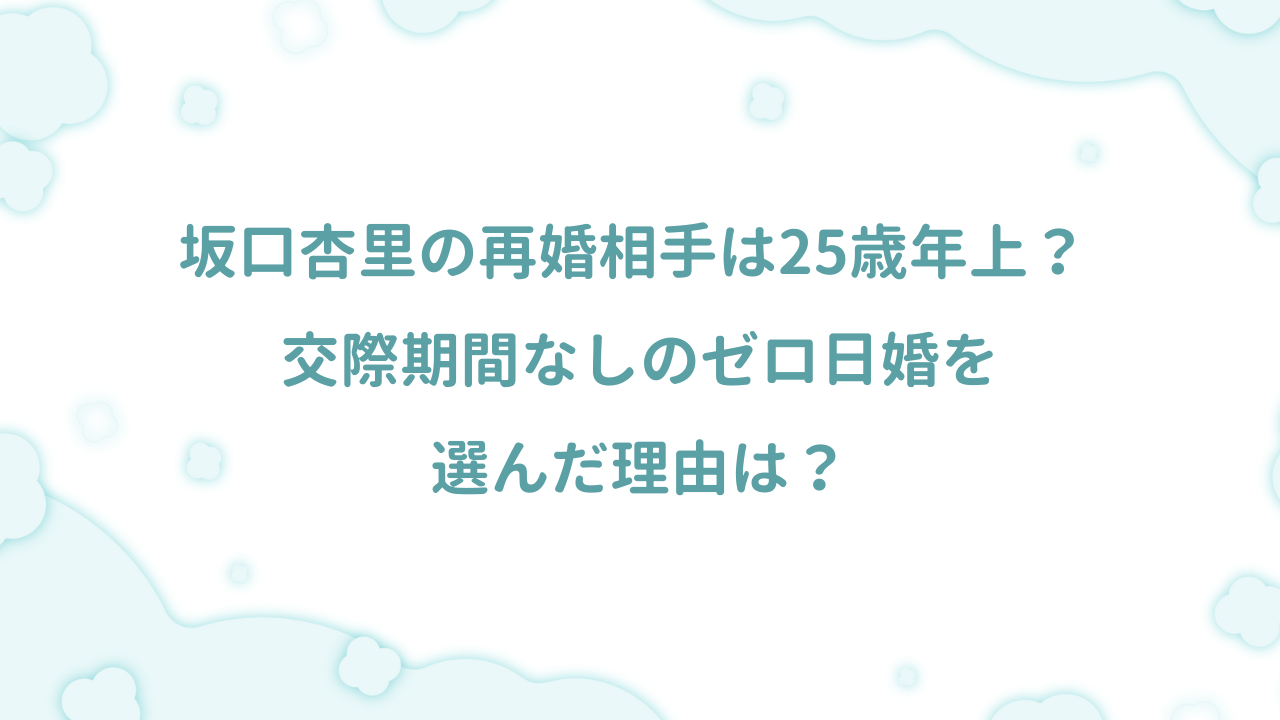 今回は坂口杏里さんの再婚相手について、詳しく調査してみました。25歳年上という年齢差や、ゼロ日婚を選んだ理由、そして元夫との違いなど、気になるポイントをまとめています。坂口杏里さんが専業主婦になったという現在の生活についても紹介するので、ぜひ最後までチェックしてみてくださいね。