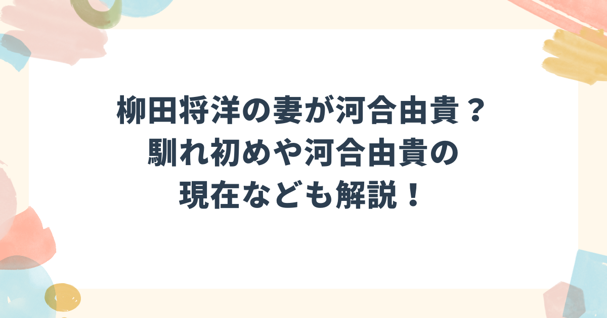 柳田将洋と河合由貴に関する疑問まとめ!