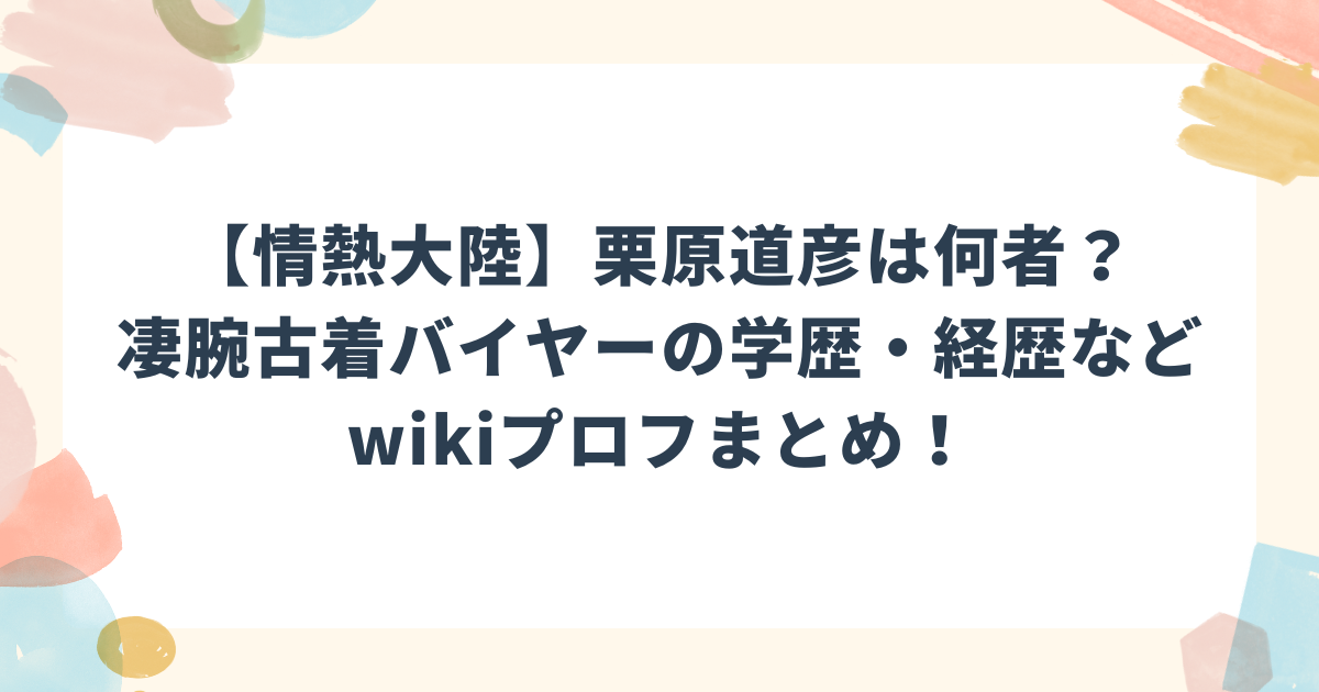 栗原道彦のこれまでの経歴を時系列で紹介!