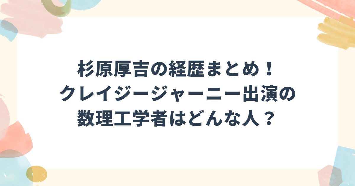 ただ、レギュラー番組としての出演はないようで、基本的にはゲストとしてスポット出演という形みたいですよ。それでもこれだけ多くの番組に呼ばれるということは、テレビ業界でも杉原厚吉さんの研究が注目されているということですよね。