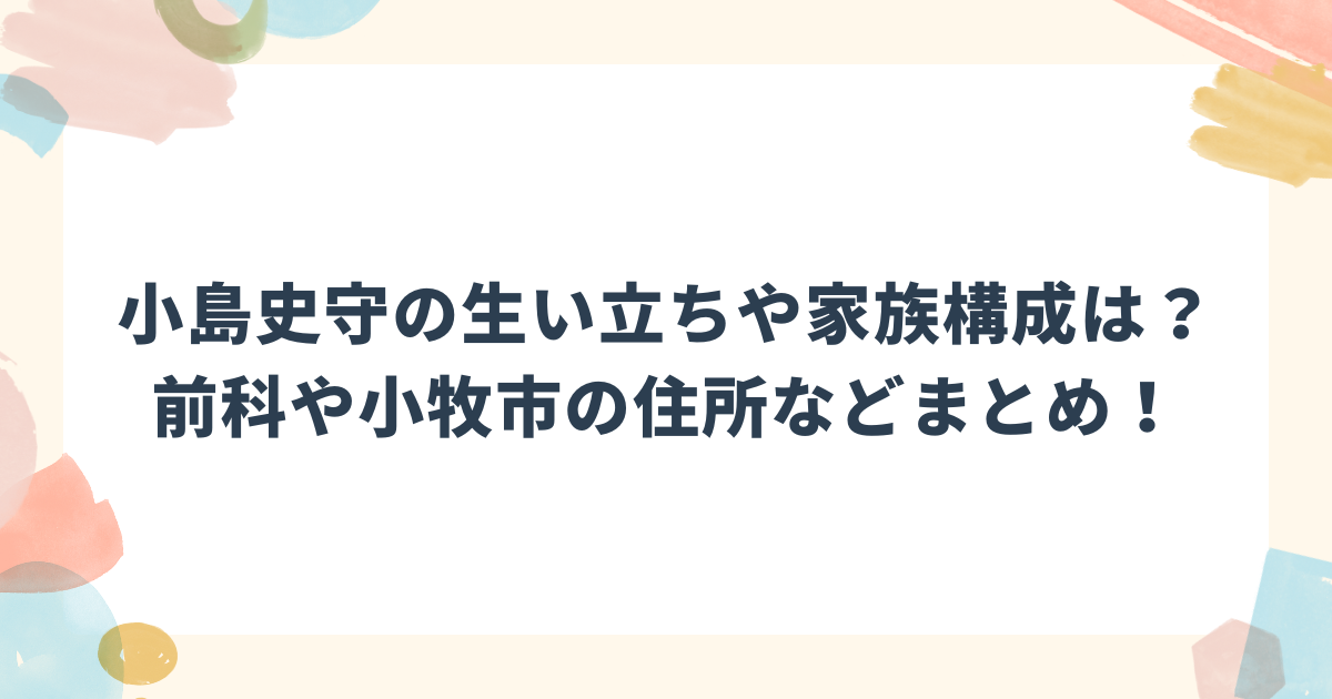 小島史守の生い立ちや家族構成、前科の有無、そして愛知県小牧市の住所など、気になる情報をまとめてみました。実名報道されたことで注目が集まっていますが、実際にはどこまで情報が公開されているのでしょうか。