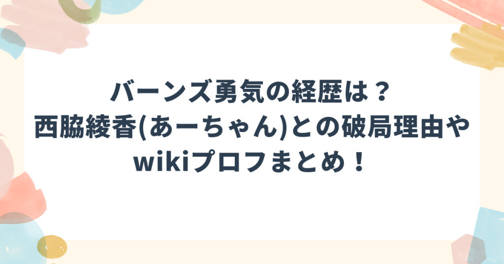 バーンズ勇気の経歴は?西脇綾香(あーちゃん)との破局理由やwikiプロフまとめ!