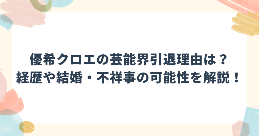 優希クロエの芸能界引退理由は?経歴や結婚・不祥事の可能性を徹底解説!