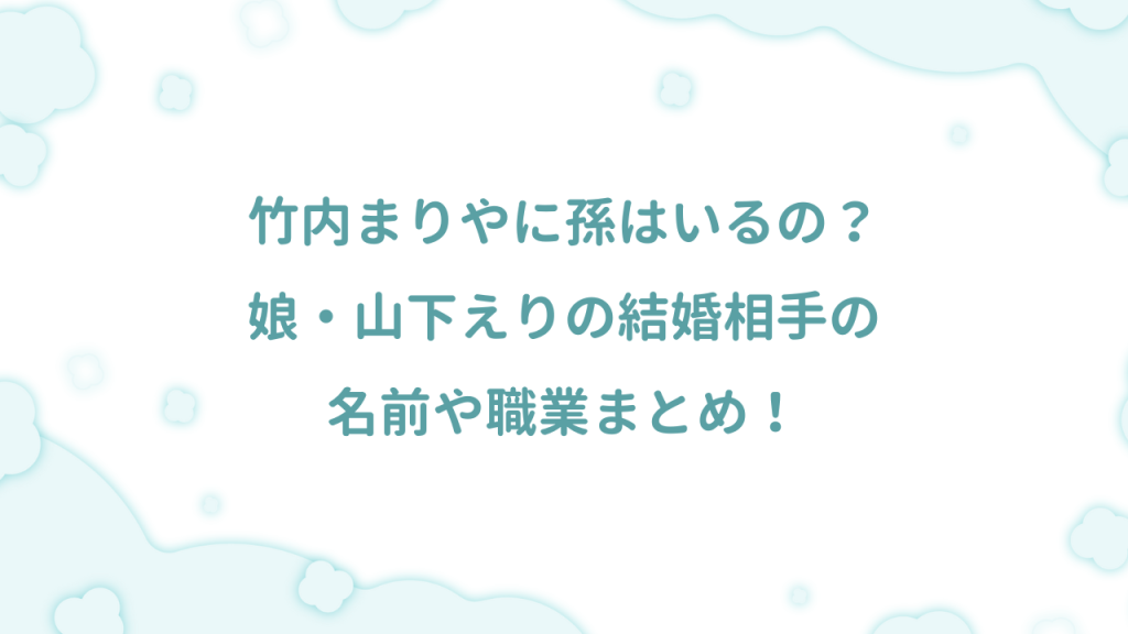 竹内まりやに孫はいるの?娘・山下えりの結婚相手の名前や職業まとめ!