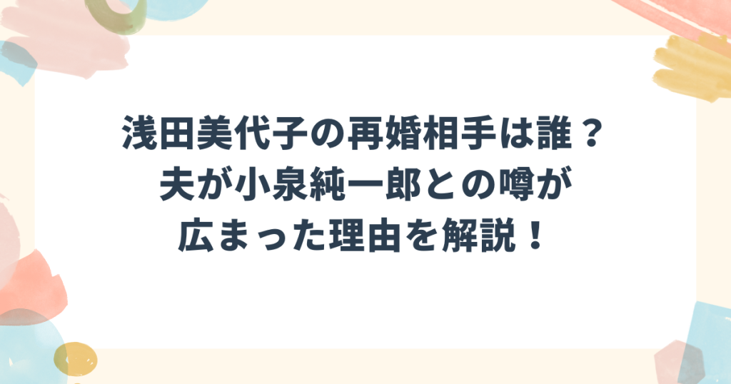浅田美代子の再婚相手は誰?夫が小泉純一郎との噂が広まった理由を解説!