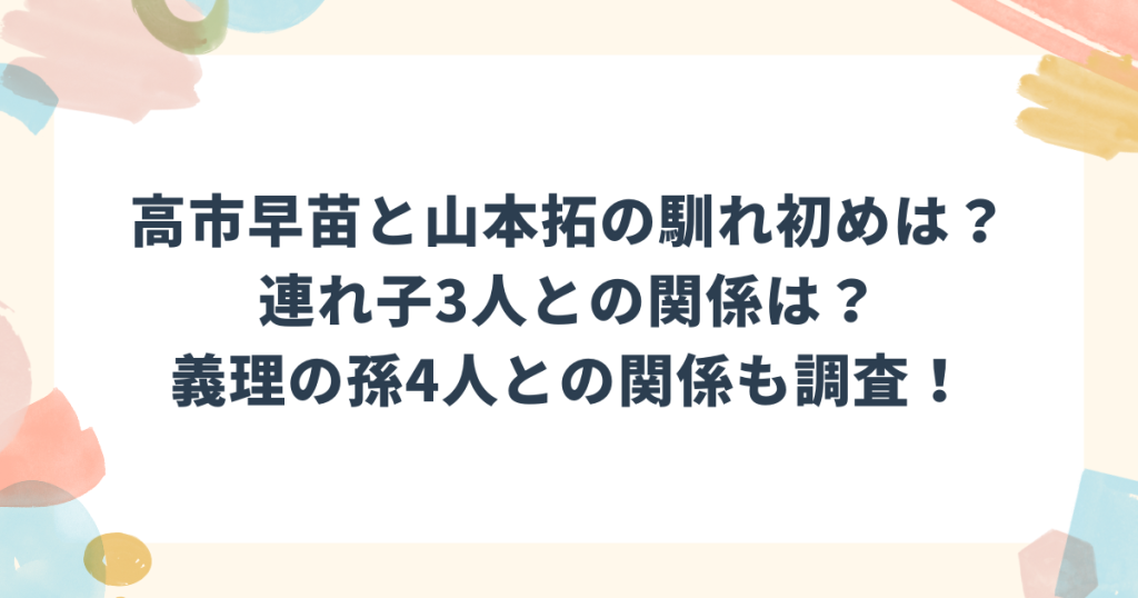 高市早苗と山本拓の馴れ初めは?連れ子3人との関係は?義理の孫4人との関係も調査!