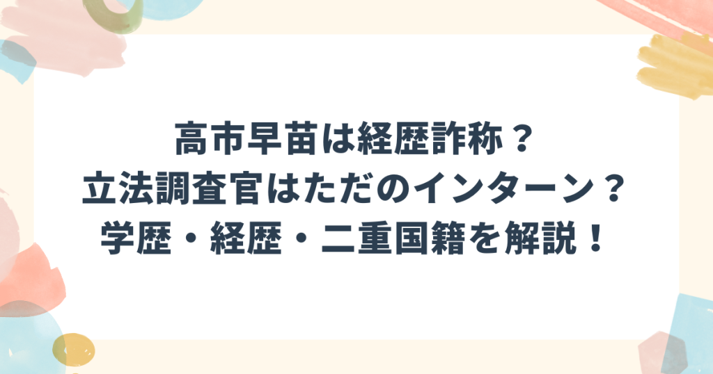 高市早苗は経歴詐称?立法調査官はただのインターン?学歴・経歴・二重国籍について解説!