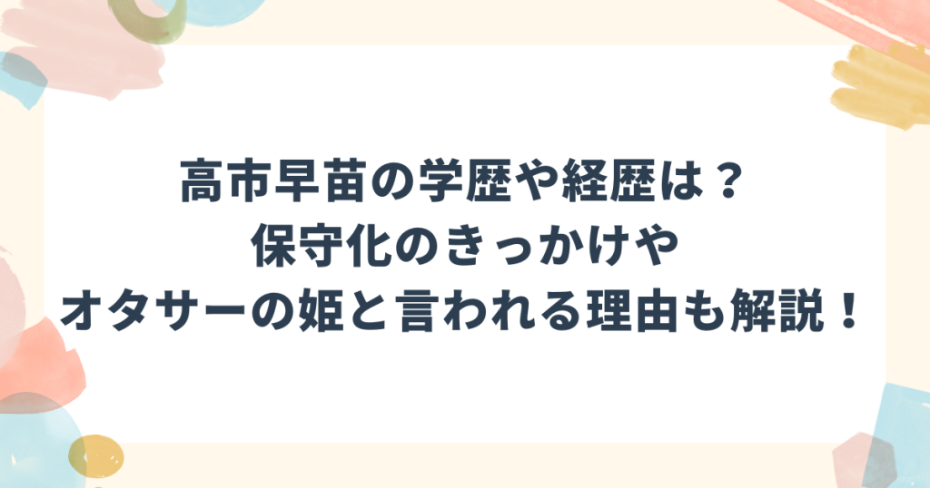 高市早苗の若い頃は?学歴や経歴は?保守化のきっかけやオタサーの姫と言われる理由も解説!