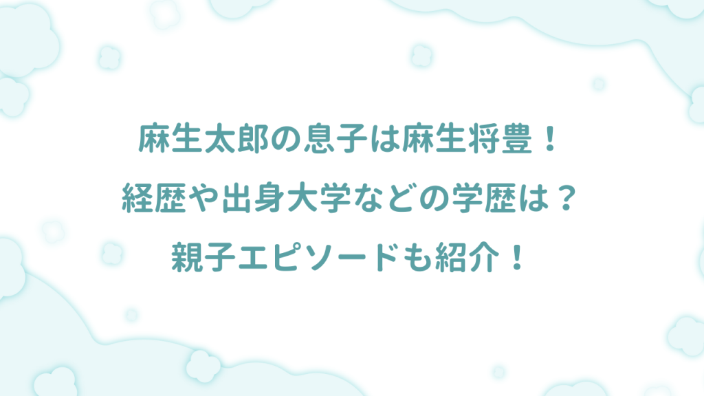 麻生太郎の息子は麻生将豊!経歴や出身大学などの学歴は?親子エピソードも紹介!