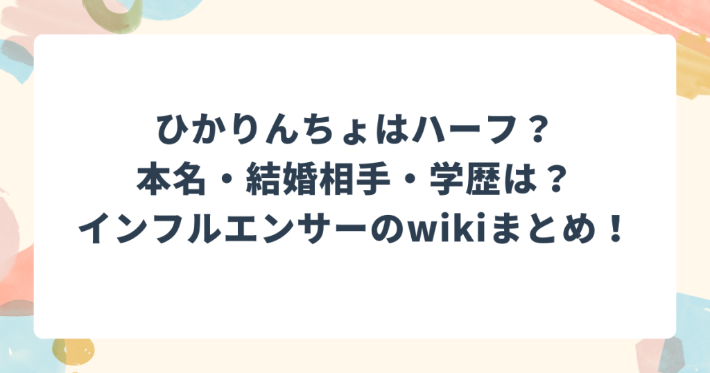 SNS総フォロワー数160万人超を誇るひかりんちょさんですが、2025年10月に結婚を報告して話題になりましたね。TikTokやInstagramで圧倒的な支持を集める彼女について、本名やハーフという噂、学歴など気になることがたくさんあるのではないでしょうか。 そ... -